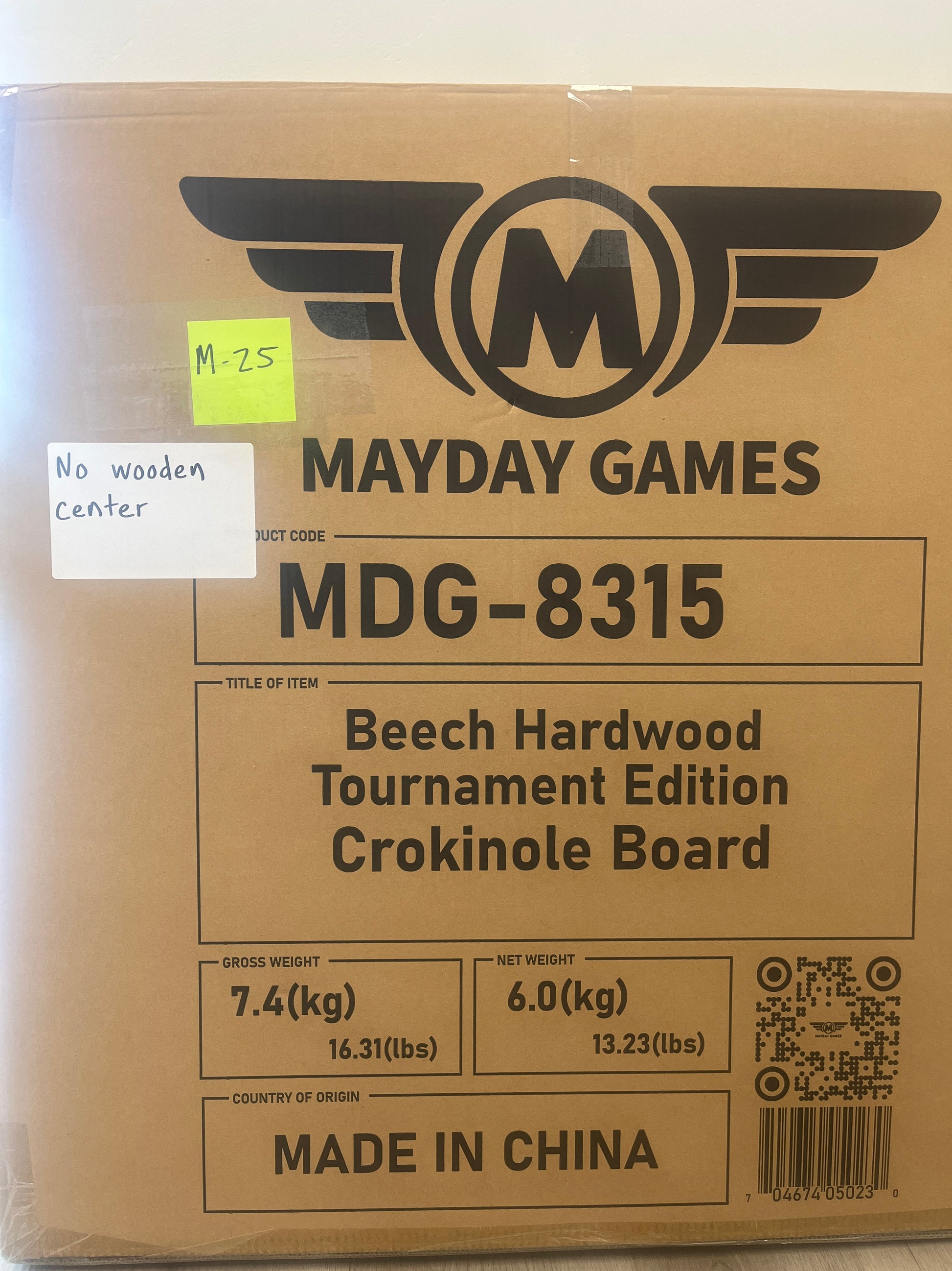 The boards consist of a 26" diameter playing surface + 2 inch ditch + 1/4 inch rim = 30.50 inches in total diameter and 3 inches thick. The game will come double boxed in a box with dimensions of 34.5 X 34.5 X 4.5 Inches and weights in at a massive 17.4 pounds (7.9 KG). Yes these are HUGE! Our boards meet the The World Crokinole Championship™ specifications which are: